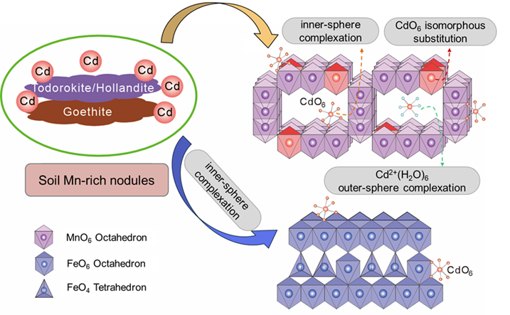 上述研究成果以 Enrichment Mechanisms of Cadmium in Natural Manganese-Rich Nodules from Karst Soils为题发表在环境科学国际权威刊物Environmental Science & Technology上。